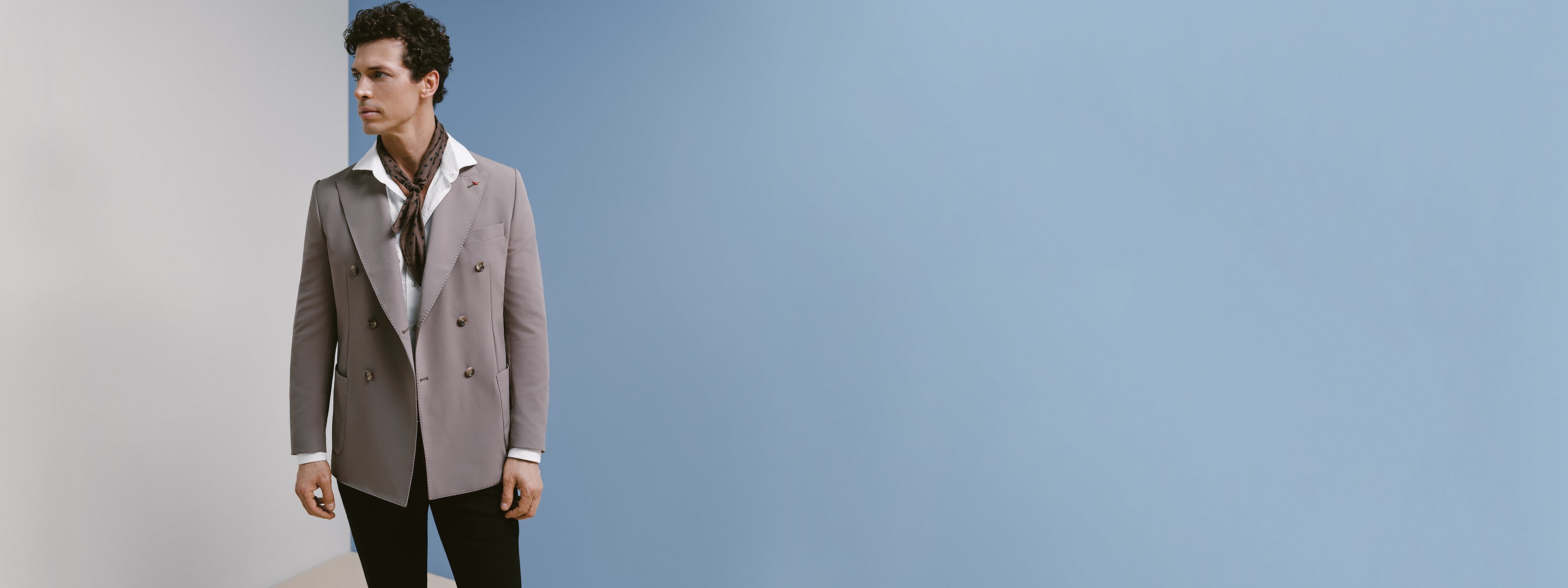 Ds Damat Slim Fit Plain Mono Collar Double Vent Lined Suit - Gray